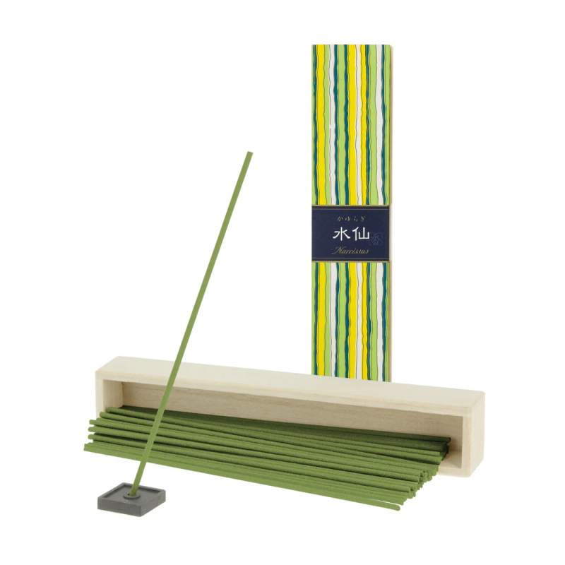 Kayuragi Narciso é um incenso com uma nota floral verde de narciso claro e aveludado.
