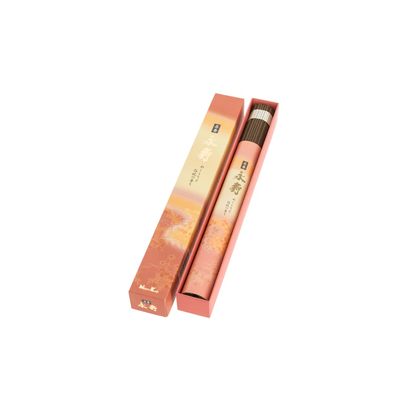 Eiju Meiko (Longa Duração) é um incenso baseado em sândalo, canela, anis estrelado, cássia, goma de benjoim, nardo e outras ervas medicinais, sendo uma expressão do sagrado, um incenso nobre feito através da adição subtil de novas essências aos aromas tradicionais transmitidos desde a antiguidade.