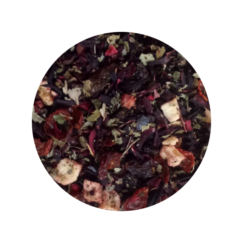 Hibisco, Rosa Mosqueta, Morango, Maçã, Amora, Amoreira, Corinto, Cereja, Passas e Framboesa
