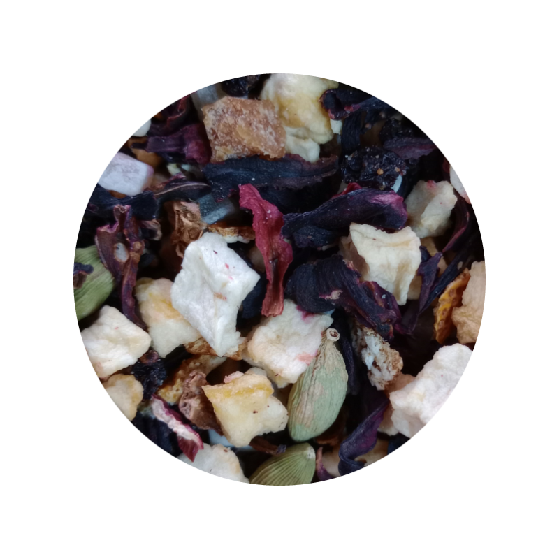 Hibisco, Maçã, Corintos, Manga, Casca de Laranja, Anis Estrelado, Canela, Cardamomo, Cravo