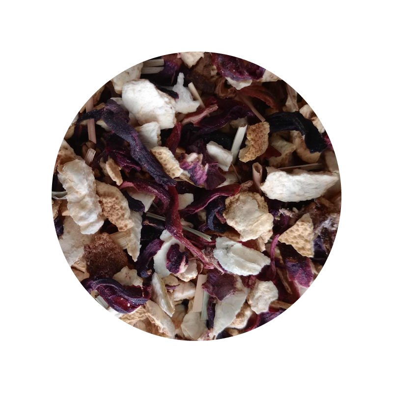 Hibisco, Casca de Limão, Casca de Laranja, Erva-Príncipe e Pedaços de Laranja